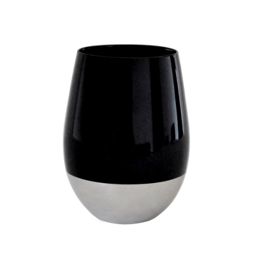 Vikko - Decor, Black Stemless Wine Glass with Silver Base, 14 oz